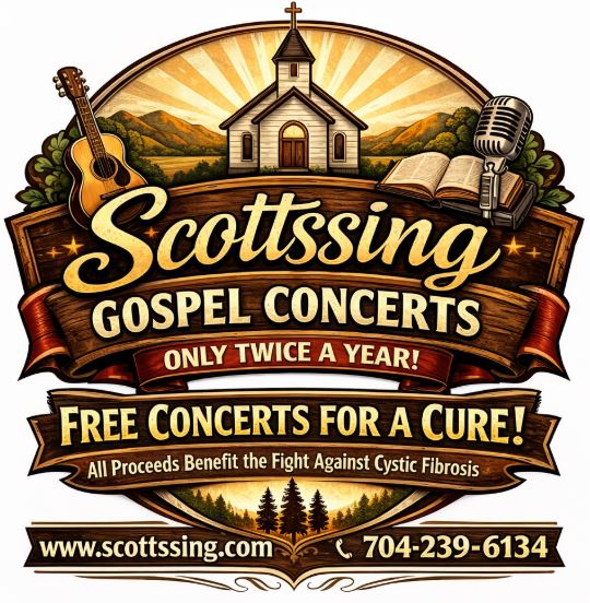 Scott's Sing is a singing for our Lord and Savior Jesus Christ and in Robin and Scott's memory and also are benefit concerts for the cure of Cystic Fibrosis. The ultimate goal is that someone will be saved through the gospel message presented at a ScottsSing event. That was Robin's prayer for these concerts.